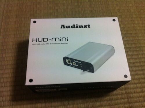 思い立ったら即実行!ということでUSB DACを買って来ました。 何にするか迷いましたが、私のしょぼい耳には必要十分だろう と思い、最近発売したHUD-mx1の廉価版であるHD-miniを購入。 お値段は9980円でした。メーカーはAudinst。 外箱。 中身一覧。本体、説…