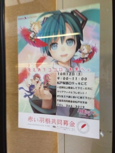 転勤前に撮ったやつですが。 一定額以上の募金で初音ミクファイルプレゼントだって。 この時すでに転勤が決まっていたのが悔しい…