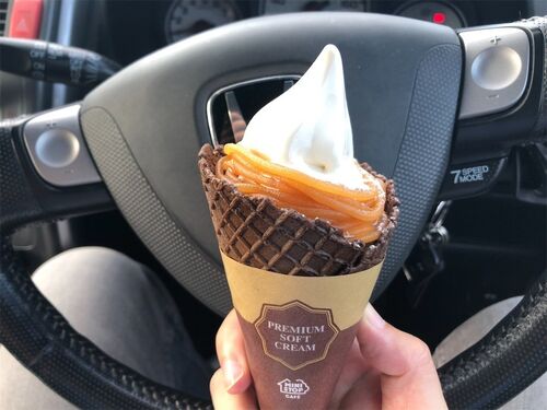 ミニストップで先日からマロンのソフトクリームを売り出してるという話を聞いて買いに行ってきました。 ソフトクリームの周りにモンブランで使われる栗のソースが入っています。 クリームがとても濃厚で、でも甘さは控えめであっさり。栗のソースもしっかり…